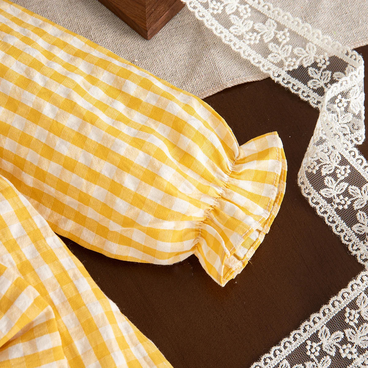 Spring And Autumn New Sweet Strawberry Baby Girl Dress, Yellow Checkered Long Sleeved Children'S Clothing For Babies Aged 0-3