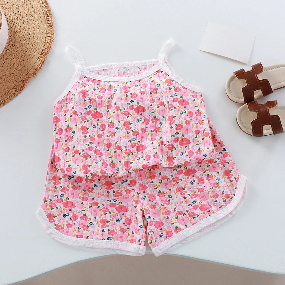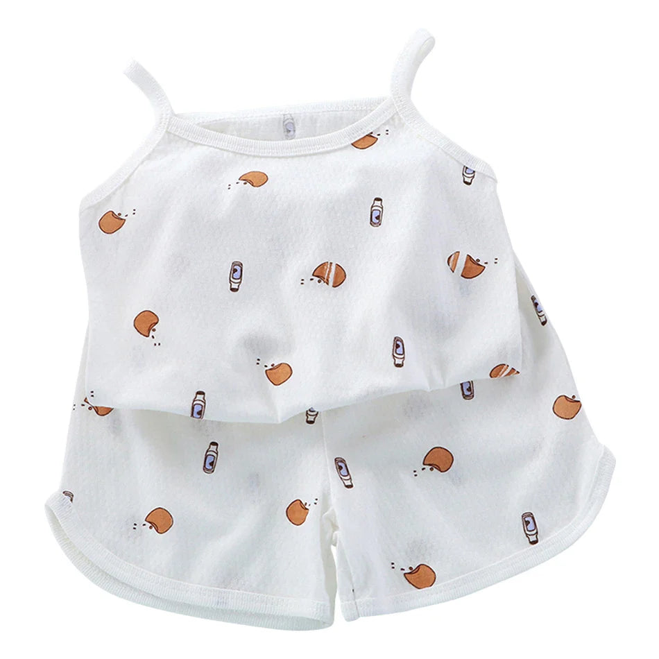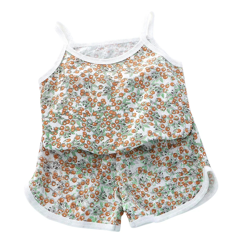 2 Pcs Children's Vest Sets Kids A-class Cartoon Print Girl Camisoles Baby Summer Clothes Shorts Girls' Home Clothes Pajama Sets