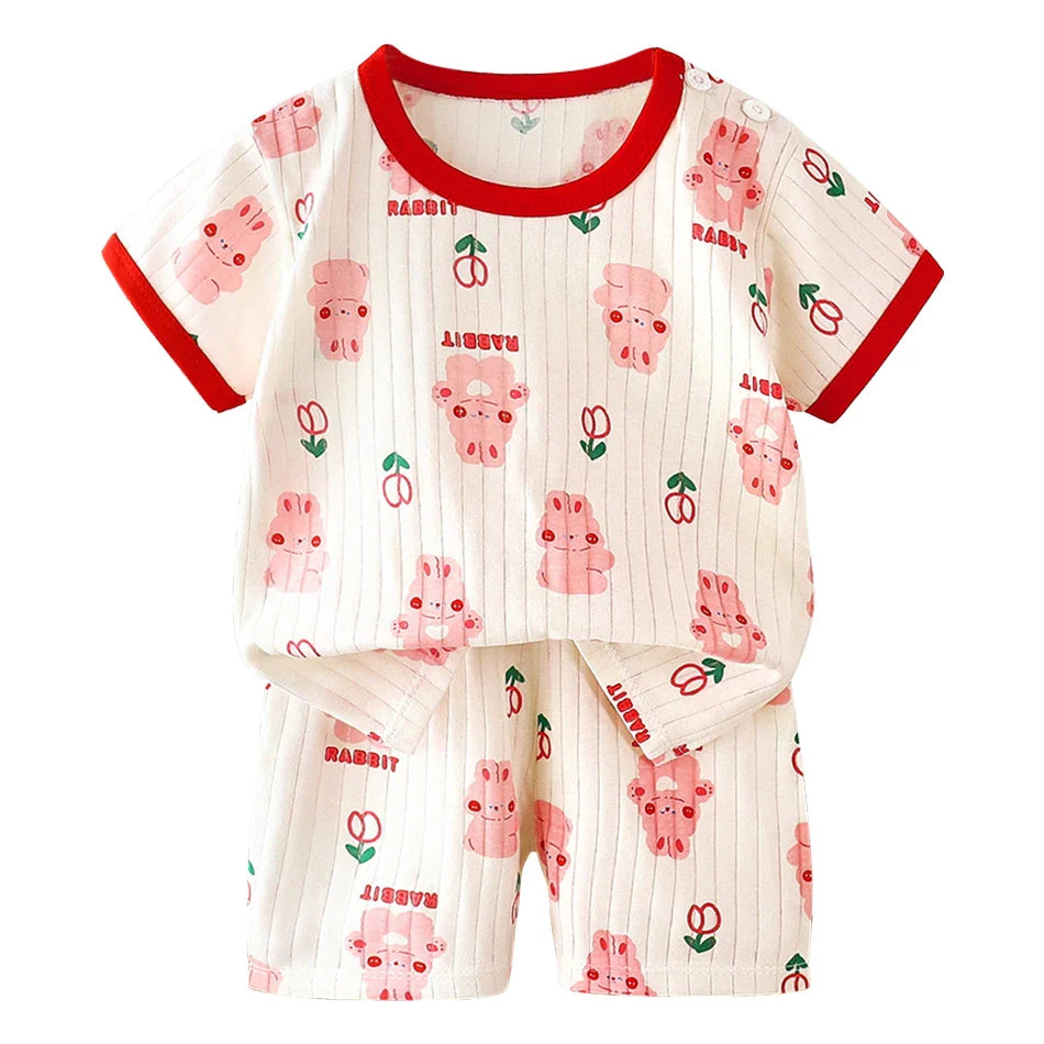 2 Pcs Dinosaur Print T-shirt Set Children's Cartoon Pajamas Sets Boys Kid's Short Sleeve Summer Korean Style Baby Girl Clothes