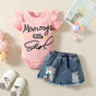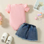Girls Casual Summer Letter Print Short Sleeve Triangle Blanket Dress + Denim Skirt Two-Piece Set Infant Outfit