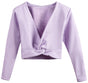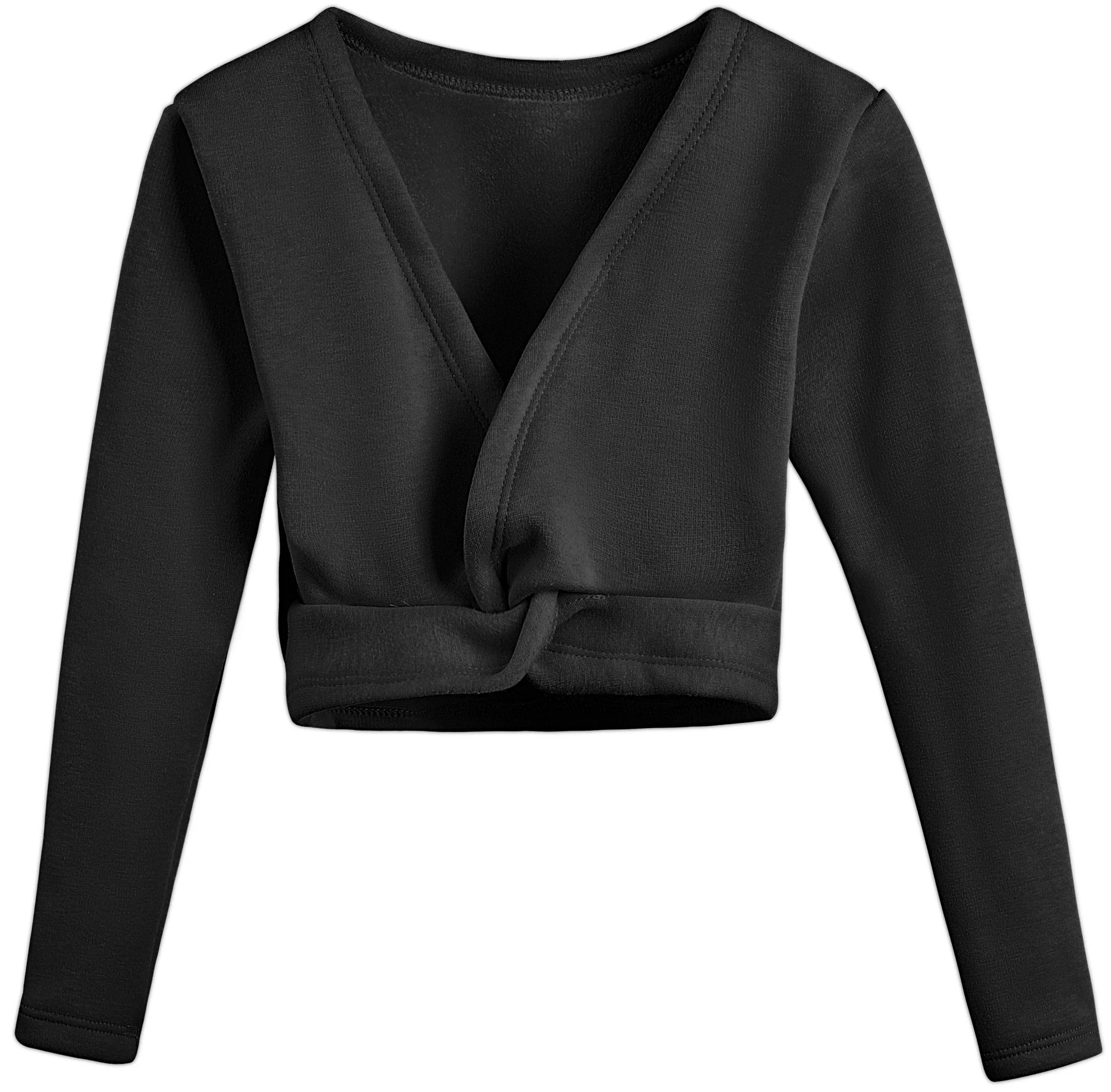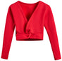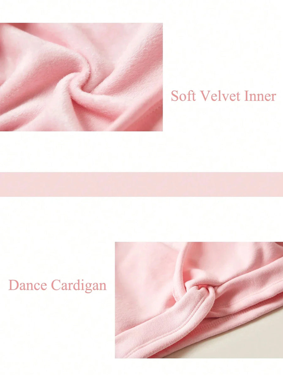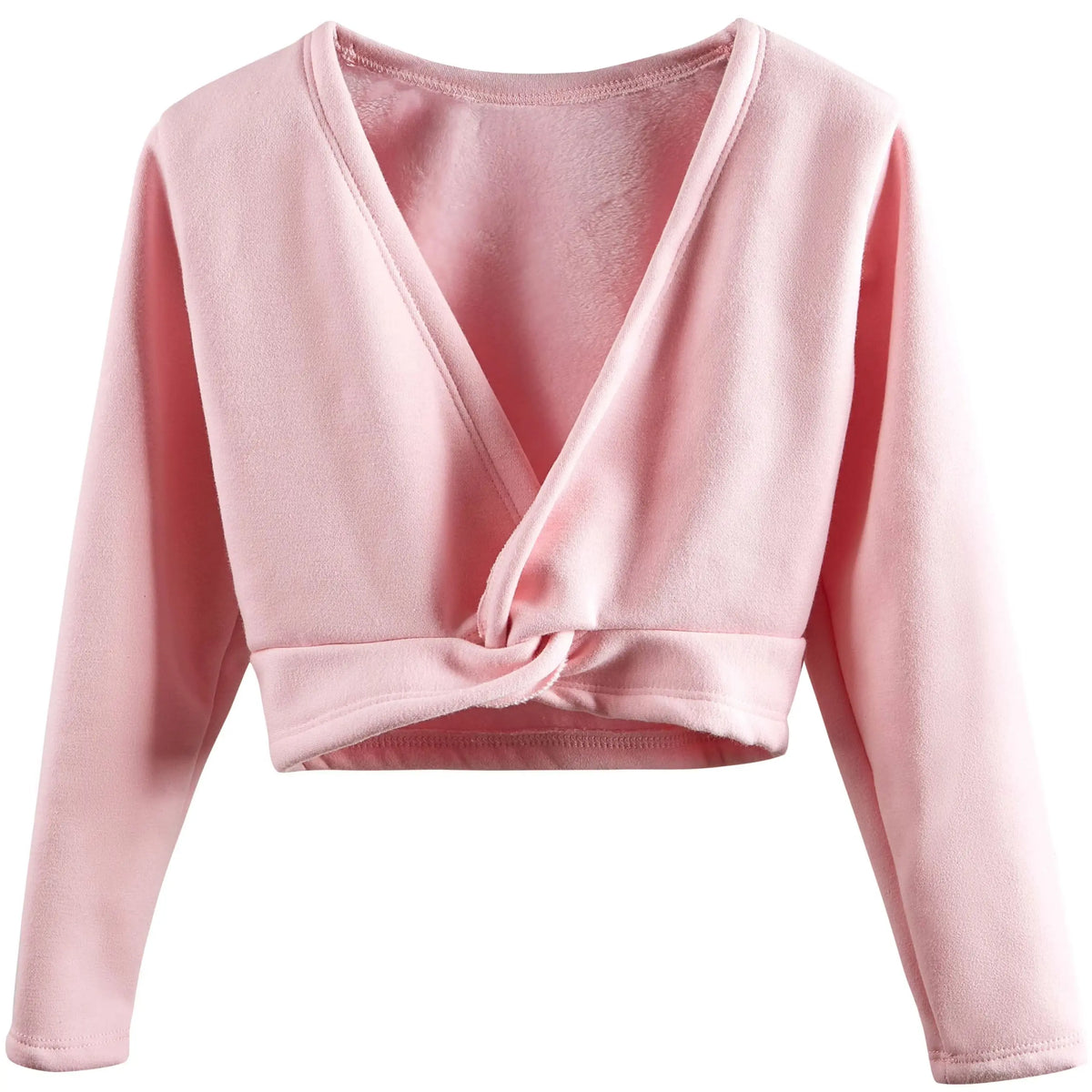 Girls Ballet Wrap Tops Kid Long Sleeve Dance Sweater Velvet Inner Classic V-neck Pullover for Gymnastic Dance Wrap Cardigan Tops
