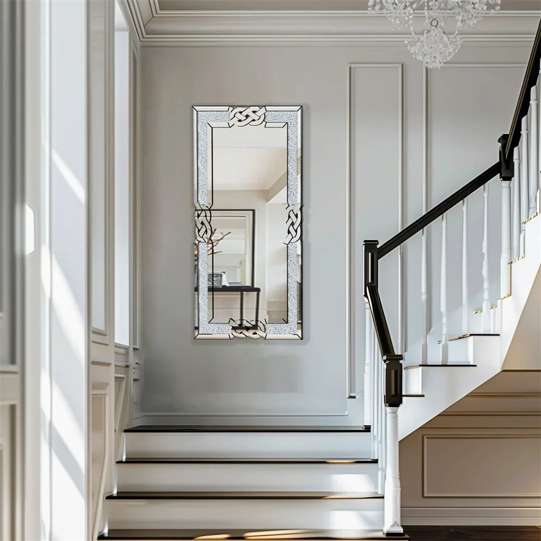 LUVODI Large Crush Diamond Full Body Wall Mirror Artistic Silver Bathroom Vanity Mirror