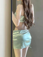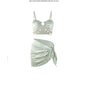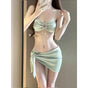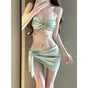 Light Green 3 Piece Swimsuit for Women,2024 New Solid Color Chain Bikini Set,summer Beach Vacation Skirt Swimwear Bathing Suit