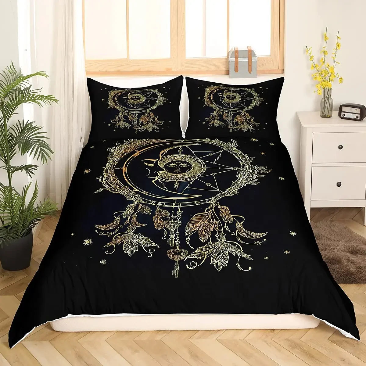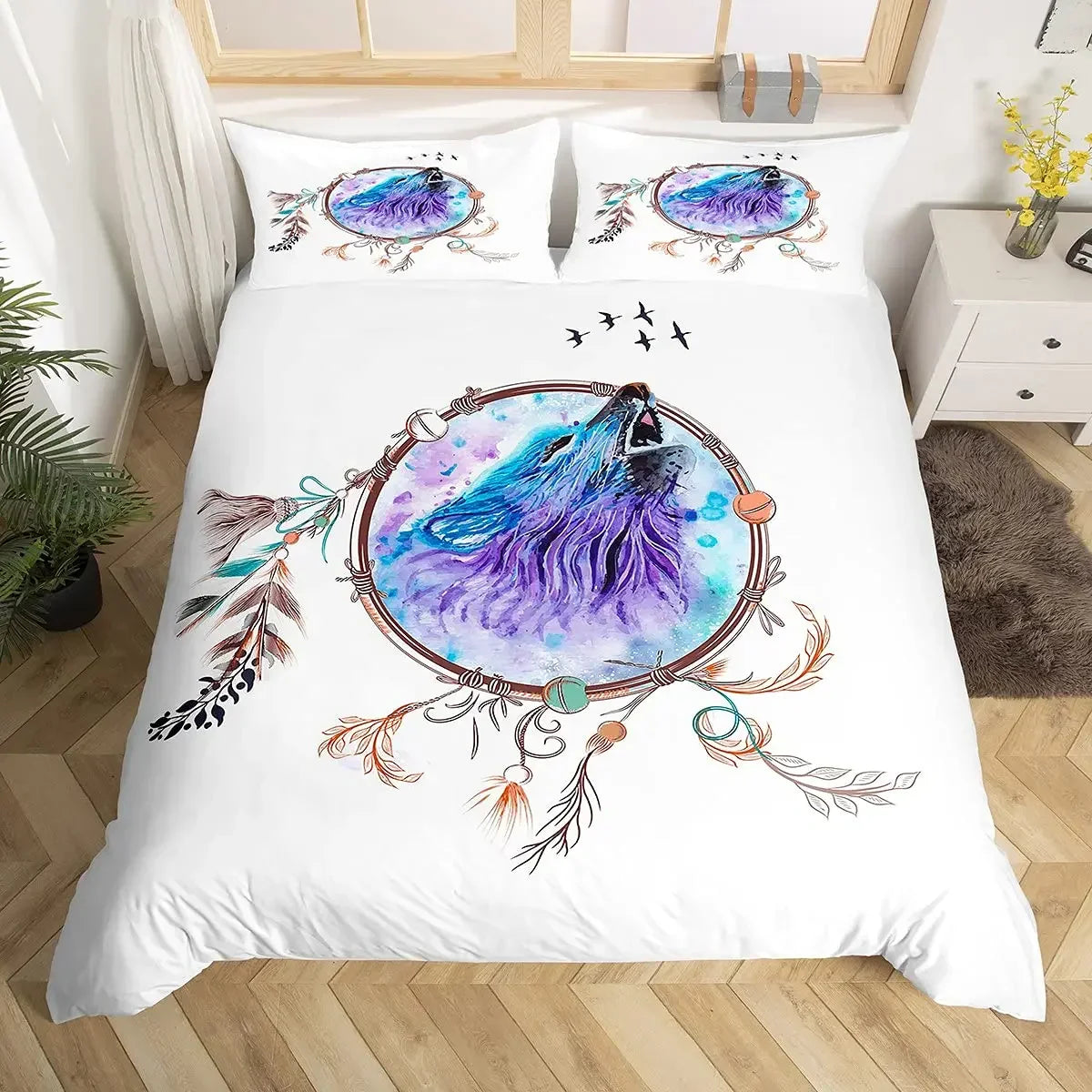 Dream Catcher Duvet Cover Set Purple Bedding Set Chic Boho Mandala Floral Feather Design Galaxy Comforter Cover Set Queen Size