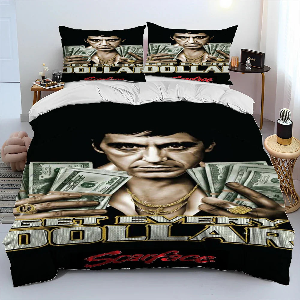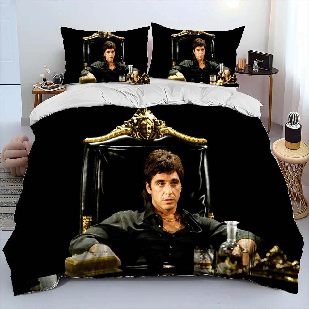 Movie Scarface Tony 3D Printing Comforter Bedding Set,Duvet Cover Bed Set Quilt Cover Pillowcase,King Queen Size Bedding Set Kid