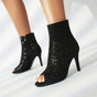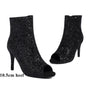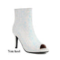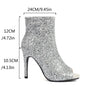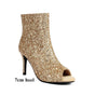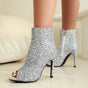Ochanmeb Glitter Silver Peep Toe Boots Women Thin High-Heeled Open Toe Zipper Golden Sequins Ankle Boot Ladies Party Shoes 34-48
