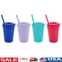 4-Pack 15oz Plastic Tumblers with Lids Straws Dishwasher Safe Spill Proof Kids Drinkware Set Perfect Picnics Playdates