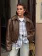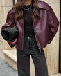 Retro motorcycle style wine red PU leather jacket for women 2025 autumn fashion matte leather jacket jacket