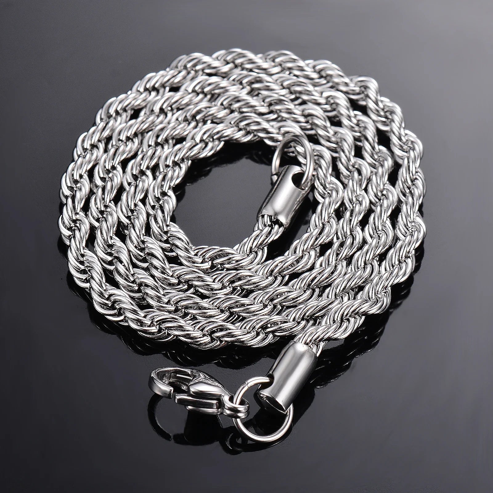 1 piece Steel Color Width 2mm/2.5mm/3mm/4mm/5mm/6mm Rope Chain Necklace/Bracelet For Men Women Stainless Steel Chain Necklace