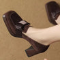 Women High 2025 New Heels Fashion Bow Dress Loafers Female Platform Heels Leather Shoes Mary Jane Retro Women Shoes Solid Color