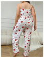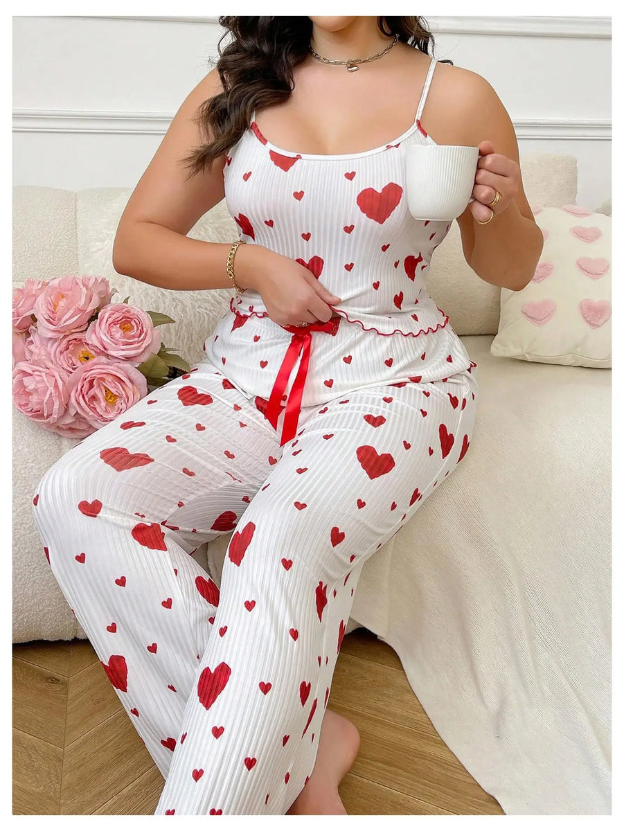 Plus Size Women Pajamas Set 2 Piece Sleeveless Vest and Trousers White Soft Breathable Sleepwear Casual Red Heart Print