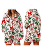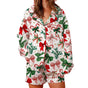 Women s Festive Holiday Pajama Set with Long Sleeve Lapel Shirt and Wide Leg Shorts in Christmas Print Sleepwear Collection