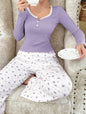 Women Sleepwear Long Sleeve T-shirt with Long Trouses Set Autumn Winter Pajamas Set Homewear Femme Loungewear
