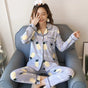 Women's Pajamas Set V-Neck Button down Top and Trousers Sleepwear Homewear Casual Nightwear Loungewear Autumn Winter Two-Piece