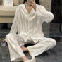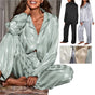 Women's Summer Striped Pajama Set Long Sleeve Top Trousers Silk Satin Home Suit Spring Loose Casual Sleepwear Female Nightwear