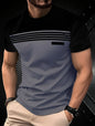 Fashionable men's summer new striped print comfortable breathable round neck T-shirt outdoor casual top