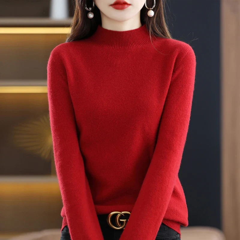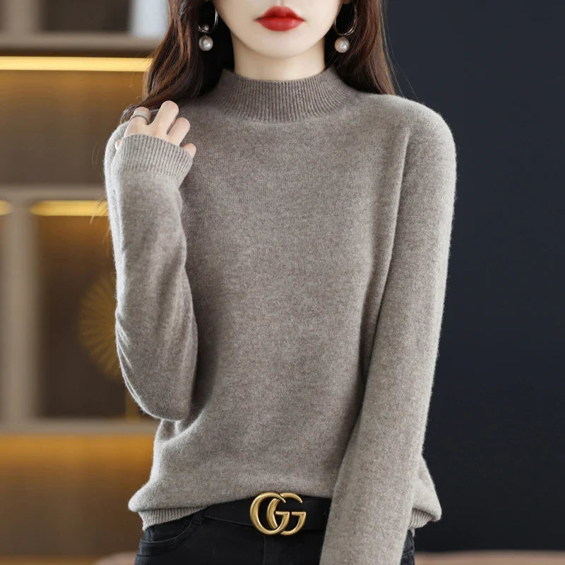 New Fashion Autumn And Winter Pure Wool Sweater Top Women's Semi-Turtleneck Solid Color Long-Sleeved Fashion Pullover Sweater101