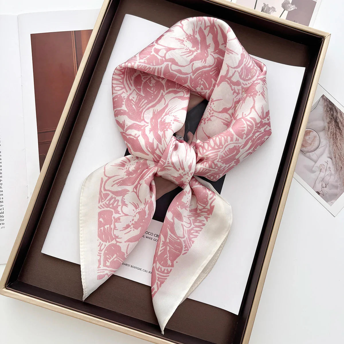 Luxury Floral Print Shawl Square Scarf for Women Soft Satin Wraps Neckerchief Female Hair Bands Ribbon Headband Bandana