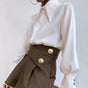 Fashion Vintage Satin Silk Shirt Women Elegant Turn Down Collar Women Blouse White Long Sleeve Ladies Shirts Tops Blusas 16946
