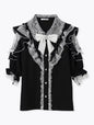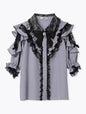 Noemi Inspired Ruffle Bow Top - Japanese Dark Femme Off-Shoulder Blouse, Lace Trim Bell Sleeve Shirt for Yami Kawaii & Lolita