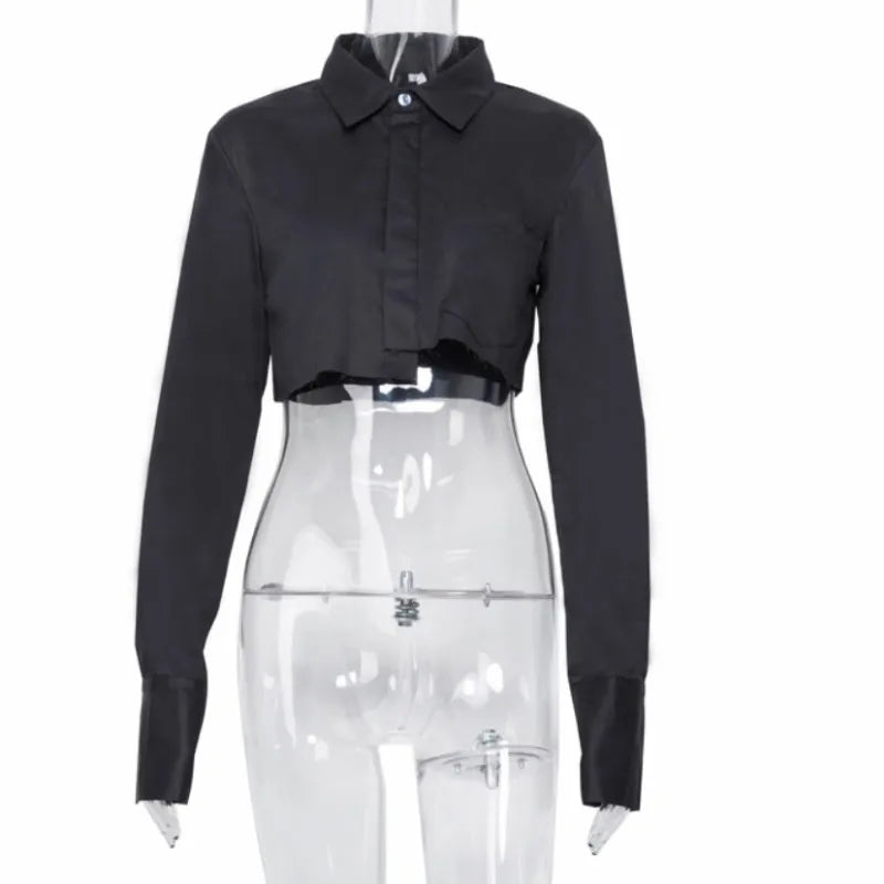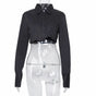 Women Long Sleeve Korean K-POP Shirt 2021 Spring Fashion Ladies Club Street Sexy Short White Top Blouse