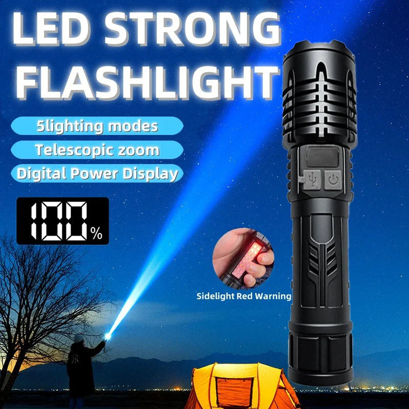 High Lumen Waterproof Tactical Flashlight - 5 Modes, Rechargeable, High Brightness, Durable ABS for Outdoor, Camping, Emergency