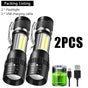 mini powerful 2 LED flashlight COB xpeUSB rechargeable linterna work flash light Torch lamp Battery fishing Camping linternas