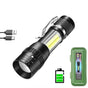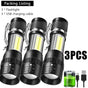 Portable Rechargeable LED Flashlight with Pen Clip Zoomable Waterproof Torch with Side Light Outdoor Camping Emergency Lantern
